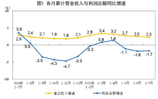 1—7月份,全国规模以上工业企业实现利润总额40203.5亿元,同比下降1.7%。