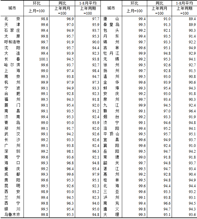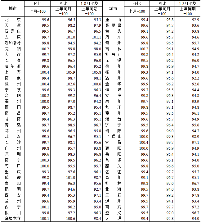 图表:2025年8月70个大中城市二手住宅销售价格指数