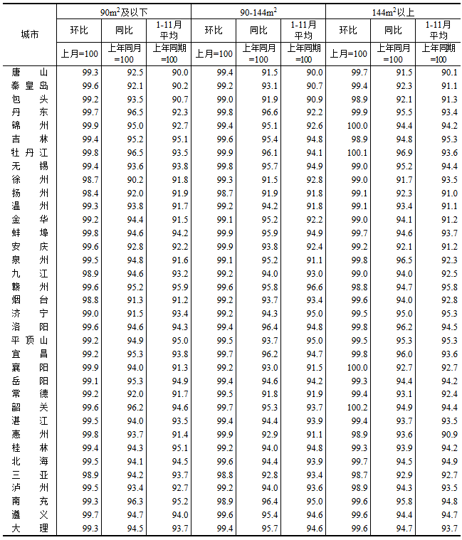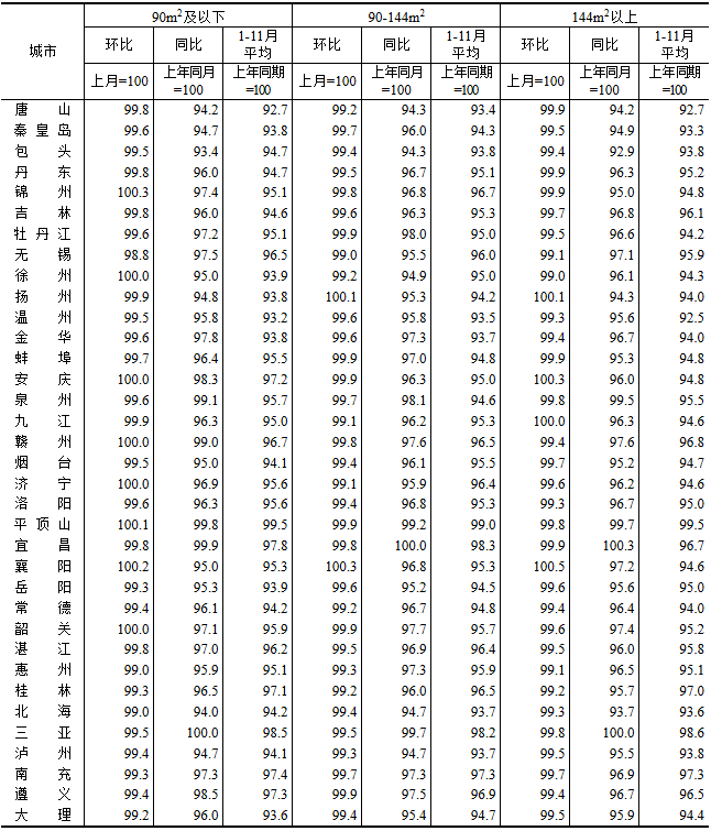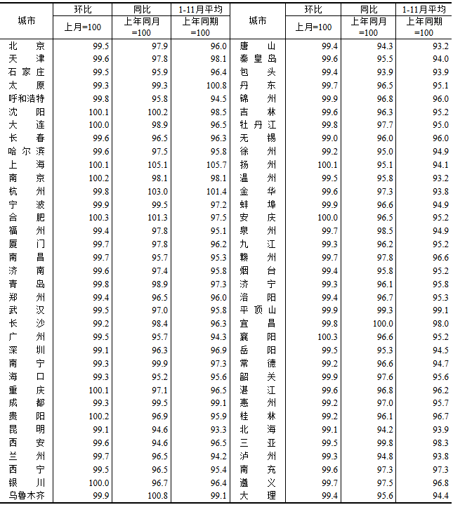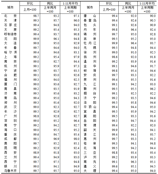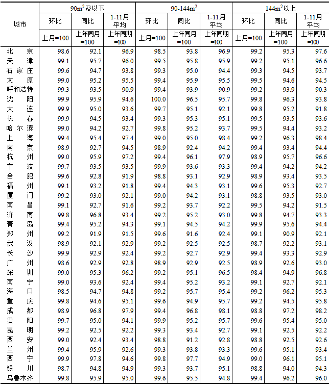 图表:2025年11月70个大中城市新建商品住宅销售价格指数