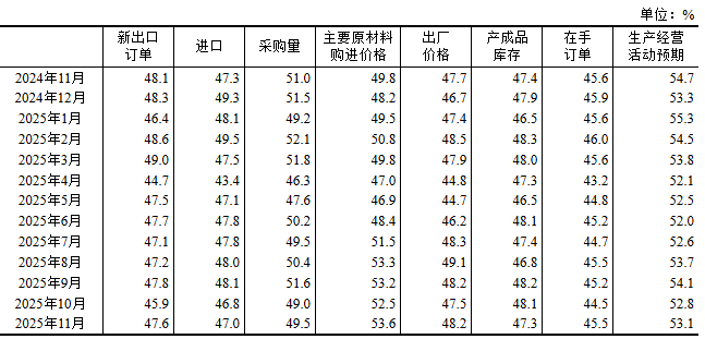 原材料库存指数为47.3%,与上月持平,低于临界点,表明制造业主要原材料库存量继续减少。