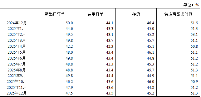供应商配送时间指数为50.2%,比上月上升0.1个百分点,表明制造业原材料供应商交货时间继续加快。