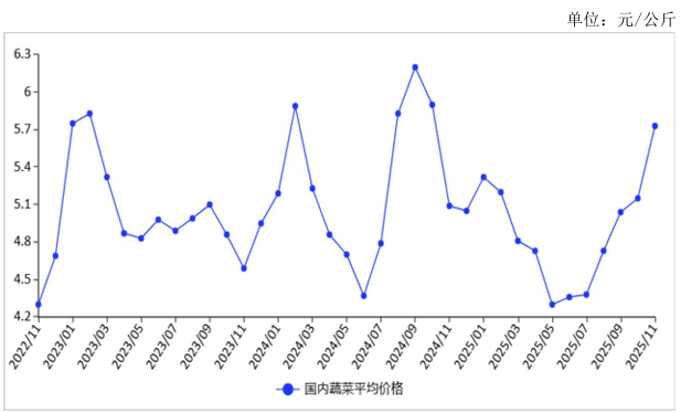 图表:2022-2025年11月蔬菜价格走势图