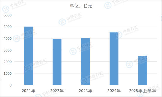 图表:2021-2025年上半年中国证券公司营业收入情况