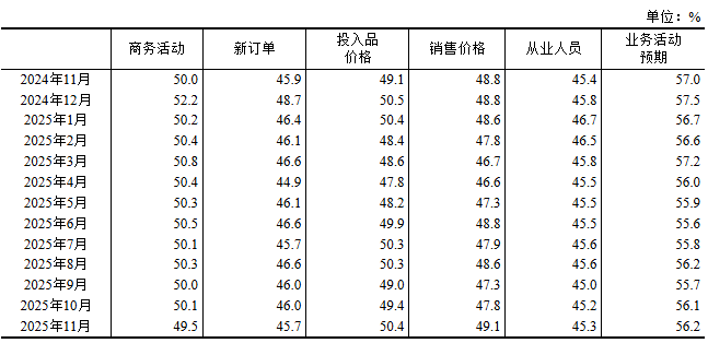 11月份,非制造业商务活动指数为49.5%,比上月下降0.6个百分点。