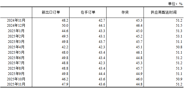 供应商配送时间指数为50.1%,比上月上升0.1个百分点,表明制造业原材料供应商交货时间略有加快。