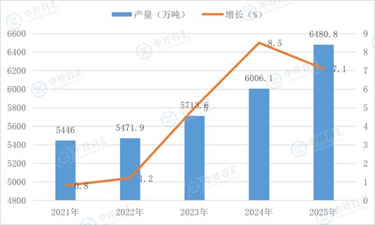 根据国家统计局数据显示,2025年,农用氮、磷、钾化学肥料(折纯)产量6480.8万吨,同比增长7.1%。