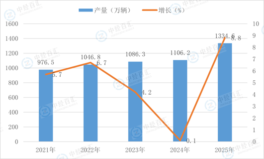 根据国家统计局数据显示,2025年,基本型乘用车(轿车)产量1334.6万辆,同比增长8.8%。