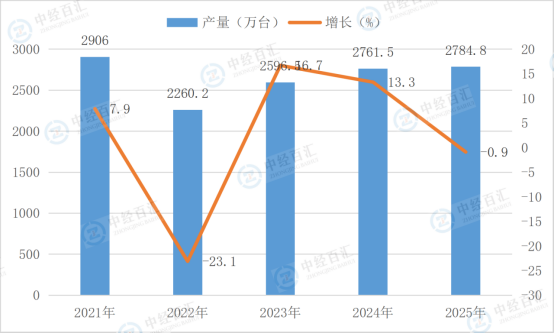 根据国家统计局数据显示,2025年,家用冷柜(家用冷冻箱)产量2784.8万台,同比增长-0.9%。