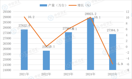 根据国家统计局数据显示,2025年,电工仪器仪表产量27384.3万台,同比增长-5.9%。