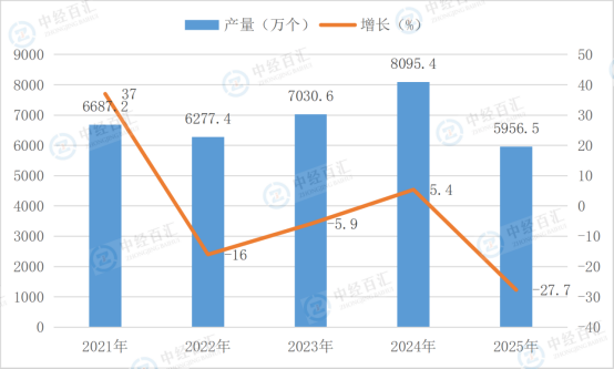 根据国家统计局数据显示,2025年,智能手表产量5956.5万个,同比增长-27.7%。