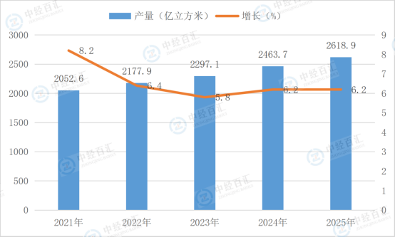 根据国家统计局数据显示,2025年,天然气产量2618.9亿立方米,同比增长6.2%。