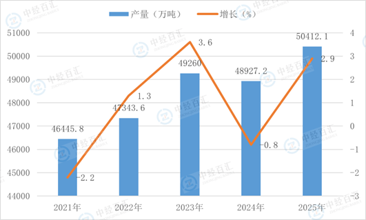 根据国家统计局数据显示,2025年,焦炭产量50412.1万吨,同比增长2.9%。