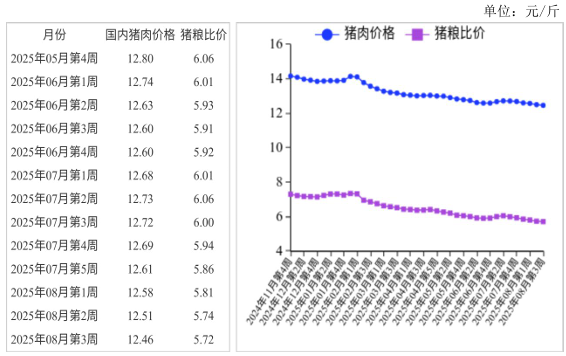 图表:2024-2025年8月生猪及猪肉价格走势图