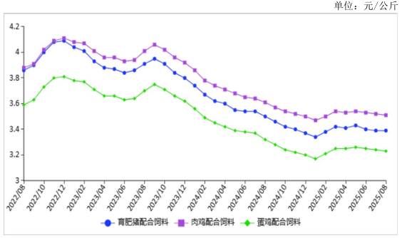 图表:2022-2025年8月主要饲料产品价格走势图