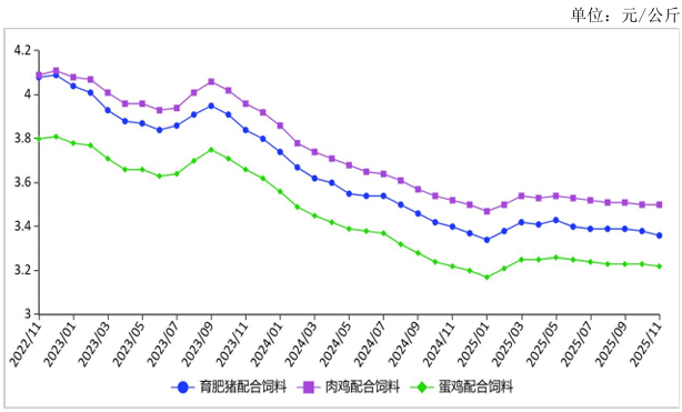 图表:2022-2025年11月饲料价格走势图
