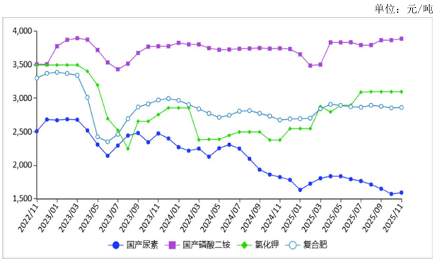 图表:2022-2025年11月肥料价格走势图