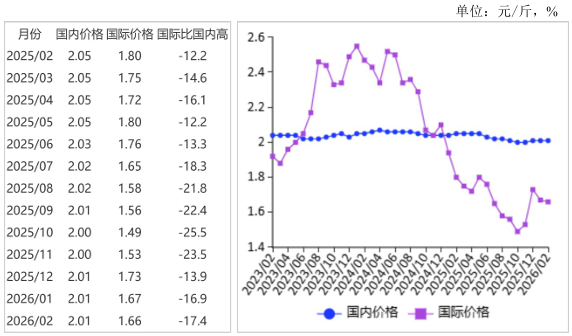 (六)预计国内稻米价格稳中偏强,国际米价偏弱运行。国内市场:随着2月底粳稻托市收购结束,政策对市场的支撑作用逐步减弱,但节后各地学校开学、企事业单位复工复产带动大米集团性消费增加,预计稻米行情阶段性回暖,价格稳中偏强运行。国际市场:菲律宾虽然恢复大米进口,但进口量预计略高于2025年,明显低于2024年,印度尼西亚在限制大米进口的同时计划出口100万吨大米,在全球大米供应过剩的背景下,大米出口市场竞争进一步加剧,预计国际米价偏弱运行。