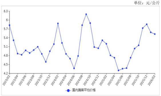 图表:2023-2026年2月蔬菜价格走势图