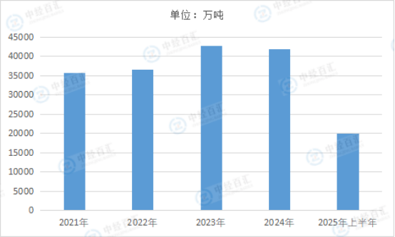图表:2021-2025年上半年中国成品油表观消费量情况