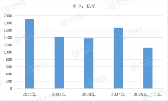 图表:2021-2025年上半年中国证券公司营业收入情况