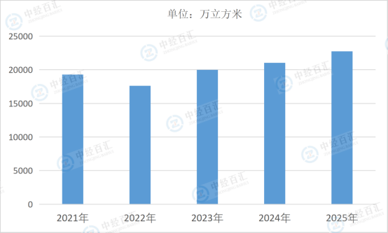 图表:2021-2025年中国胶合板产量情况