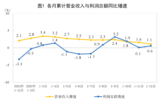 >数据中心>宏观经济>2025年全国规模以上工业企业利润增长0.6%