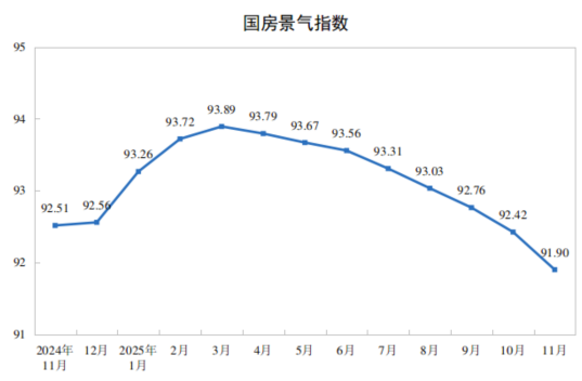 11月份,房地产开发景气指数(简称“国房景气指数”)为91.90。