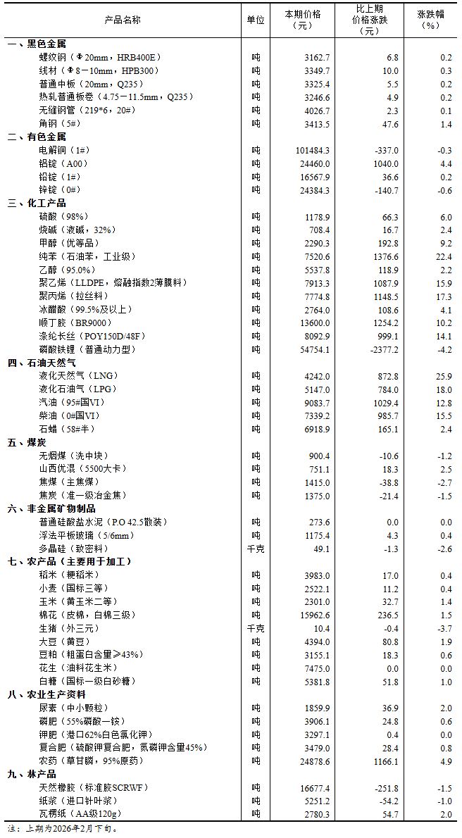 图表:2026年3月上旬流通领域重要生产资料市场价格变动情况