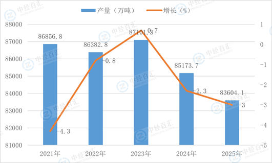 根据国家统计局数据显示,2025年,生铁产量83604.1万吨,同比增长-3.0%。