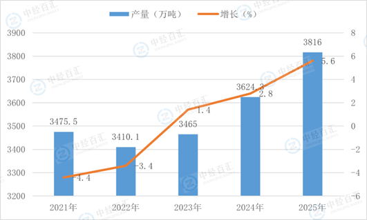 根据国家统计局数据显示,2025年,铁合金产量3816.0万吨,同比增长5.6%。