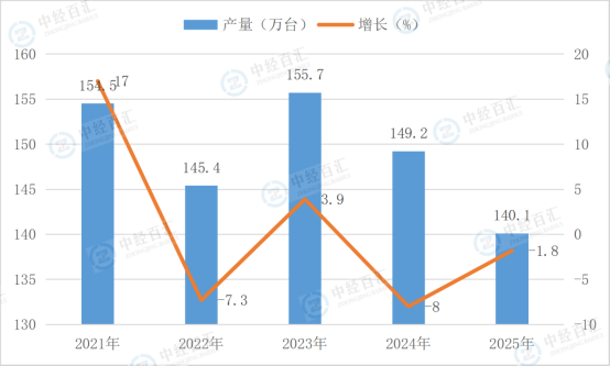 根据国家统计局数据显示,2025年,电梯、自动扶梯及升降机产量140.1万台,同比增长-1.8%。