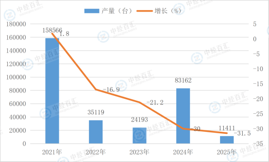 图表:2021-2025年中国饲料生产专用设备产量及增长