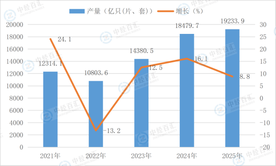 图表:2021-2025年中国光电子器件产量及增长