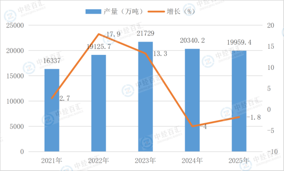 根据国家统计局数据显示,2025年,柴油产量19959.4万吨,同比增长-1.8%。