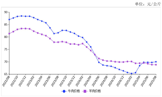 图表:2022-2025年8月牛羊肉价格走势图