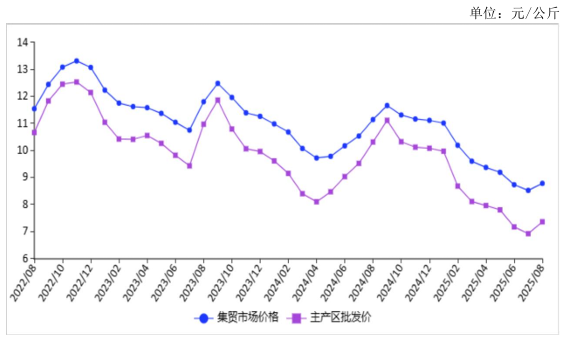 图表:2022-2025年8月鸡蛋价格走势图
