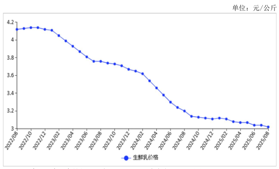 图表:2022-2025年8月生鲜乳价格走势图