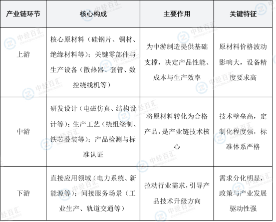 电抗器行业产业链呈现“上游供给支撑、中游制造核心、下游需求拉动”的清晰结构,各环节紧密联动且具有鲜明的产业特征。上游主要包括核心原材料与关键零部件及生产设备,其中硅钢片、铜材等原材料直接决定产品性能与成本,绝缘材料保障产品安全运行,散热器、套管等关键零部件及数控绕线机、局放检测设备等生产设备则是中游制造精度与质量的重要保障;中游为制造环节,涵盖研发设计、生产工艺及产品检测与标准认证,企业需结合下游场景需求开展电磁仿真、结构强度仿真等研发设计工作,通过绕组绕制、铁芯叠装等核心工艺实现产品生产,并通过严格的出厂检测与型式试验确保产品符合国内外标准;下游则形成直接应用领域与间接服务场景的需求格局,电力系统、新能源等直接应用领域对电抗器性能与可靠性要求严苛,是需求核心来源,工业生产、轨道交通等间接服务场景则通过下游产业发展间接拉动配套需求,各环节协同作用共同推动行业整体发展。