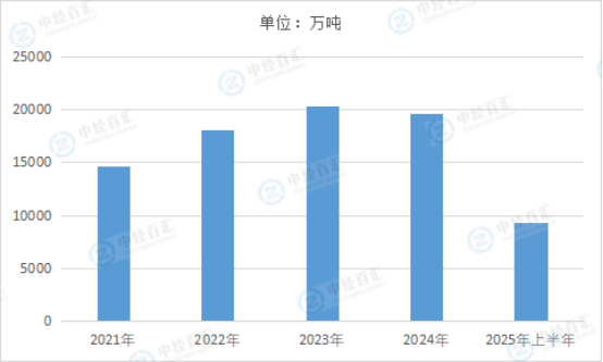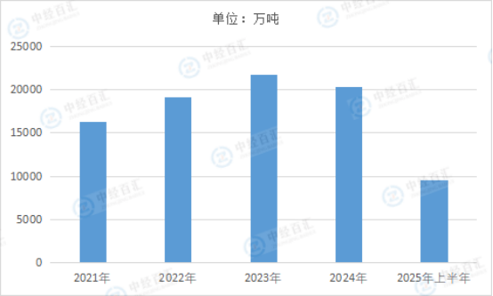 图表:2021-2025年上半年中国柴油表观消费量情况