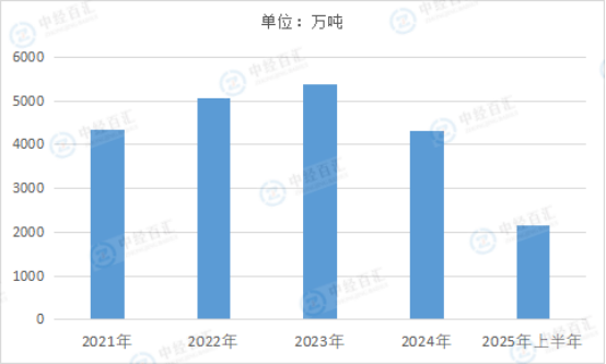 图表:2021-2025年上半年中国燃料油产量情况
