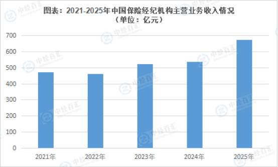 随着国内保险市场成熟度的不断提升,保险经纪机构被越来越多的投保人和保险公司所认可,通过保险经纪渠道实现的保费收入近年来呈现出良好的高速增长趋势。从保费收入构成看,国内保险经纪机构的保费收入目前仍以财产险为主,且财产险保费收入保持相对较高的增长态势。保险经纪机构的出现可以进一步扩展保险市场的广度和深度。保险经纪机构作为投保人的利益代表,更了解投保人需求,可以为投保人提供更专业的保险方案策划和风险管理咨询服务,激活投保人的保险购买力,促成投保人的潜在购买需求向现实购买力转化。同时,保险经纪机构还可以根据投保人的需求设计开发新的保险产品,增加保险市场的有效供给并扩大保险消费。2025年,保险经纪机构主营业务收入约671.65亿元。随着中国银保监会不断推动保险中介行业发展,特别是鼓励保险经纪渠道的推广,以及保险市场的快速发展,预计保险经纪市场将迎来更加广阔的发展空间。