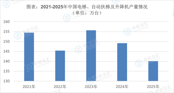 电梯是指服务于建筑物内若干特定的楼层,其轿厢运行在至少两列垂直于水平面或与铅垂线倾斜角小于15°的刚性轨道运动的永久运输设备。从中国电梯产品产量情况来看,在城镇化持续发展、基础设施投资建设和旧楼加装电梯等动力推动下,电梯行业产量逐渐增多。2025年,电梯、自动扶梯及升降机产量140.1万台,同比下降1.8%。综合各品牌在中国市场的研发能力、产品质量、服务水平和顾客满意度等表现,中国电梯行业竞争企业可分为四个梯队,以通力、日立、三菱电梯以及奥的斯为代表的老牌外资电梯企业仍然领衔国内电梯市场,为第一梯队;迅达电梯、东芝电梯、蒂森电梯、富士达电梯等外资品牌的客户管理精细程度相对较弱,位于第二梯队;永大电梯、康力电梯、西奥电梯等本土电梯企业产品成为民族品牌电梯代表,发展势头强劲,位于第三梯队;其他国内电梯行业的中小企业位于第四梯队。