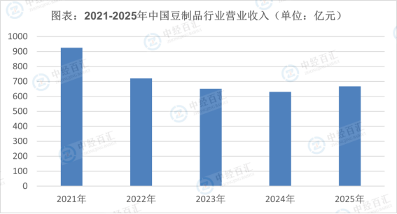 豆制品是以大豆、绿豆、豌豆、蚕豆等豆类为主要原料,经加工而成的食品,目前大多数豆制品是由大豆加工而来。大豆制品可分为熟制大豆、豆粉、豆浆、豆腐、豆腐脑、豆腐干、腌渍豆腐、腐皮、腐竹、膨化豆制品、发酵豆制品、大豆蛋白和其他大豆制品等多类食品。豆制品行业的营业收入在过去几年中稳步增长。2025年,豆制品行业营业收入约667.54亿元。这表明豆制品行业在国内市场上取得了良好的发展态势。随着消费者对健康食品的需求增加以及豆制品在素食和饮食多样化中的重要地位,预计豆制品行业的营业收入将继续增长。然而,受到市场竞争和原材料价格波动等因素的影响,豆制品行业的营业收入增长可能会面临一定的挑战。