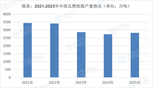瓦楞纸箱是指使用瓦楞纸板经过印刷、模切、钉箱或糊盒制成的包装用纸容器。作为一种外包装,瓦楞纸箱主要起到运输过程中的储存、保护作用,其印刷内容可还起到美化外观、展示产品、广告宣传的作用。与金属、塑料、玻璃包装产品相比,瓦楞纸箱废弃物较少、易于回收再利用,并且印刷时主要采用无毒易分解的环保水性油墨,是公认的“绿色包装产品”,广泛地应用于家电、电子产品、IT、食品饮料、图书、日化、纺织品等下游行业中。瓦楞包装属于纸包装的一种,是指用纸和纸板等原材料,进一步加工制成纸制品的生产活动;并利用加工制造出来的瓦楞纸、纸板、纸箱、纸盒等进行相关行业产品包装服务的一系列活动。与世界主要国家相比,我国瓦楞纸箱行业虽然起步较晚,但增长十分迅速。早在2003年,我国便已超过日本成为全球第二大瓦楞纸箱生产国,仅次于美国。2025年瓦楞纸箱产量约2820.45万吨。瓦楞纸箱在包装中很受欢迎,因为可持续性已成为整个价值链中更为重要的问题–易于回收,并且纸浆和造纸行业已经熟练地将其转化为新一代的箱板纸。这些品质意味着,与聚合物基的替代品,如发泡聚苯乙烯(EPS)泡沫相比,瓦楞包装的防护功能越来越受欢迎。