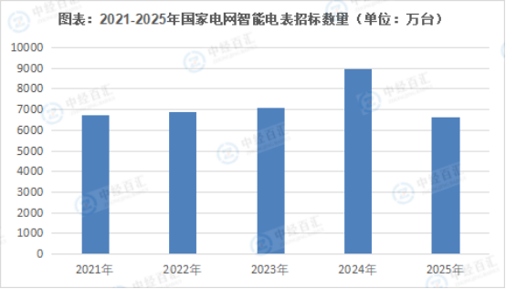 智能电表是智能电网(特别是智能配电网)数据采集的基本设备之一,承担着原始电能数据采集、计量和传输的任务,是实现信息集成、分析优化和信息展现的基础。智能电表除了具备传统电能表基本用电量的计量功能以外,为了适应智能电网和新能源的使用它还具有双向多种费率计量功能、用户端控制功能、多种数据传输模式的双向数据通信功能、防窃电功能等智能化的功能。按相数与级别,智能电表可以分为A级单相智能电表、B/C/D级三相智能电表四个类别。近年来,国家电网智能电表的招标数量呈现波动态势;但呈现一定的周期性。由于自2009年智能电网规划开始实施,国家电网智能电表招标金额逐年上涨,智能电表行业进入快速发展期。但自2016年起,由于前期的覆盖率全面提升,智能电表招标下降,进入行业调整期。但在2018-2019年,由于智能电表工作周期一般为6-8年,因此在铺设前期的电表产品陆续进入集中更换期,国家电网智能电表招标量显著回暖。国家电网的智能电表招标数量在过去几年中呈现增长趋势。2025年招标数量达6647万台。