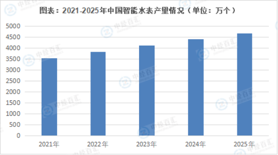 智能水表是一种利用现代微电子技术、现代传感技术、智能IC卡技术对用水量进行计量并进行用水数据传递及结算交易的新型水表,与传统水表一般只具有流量采集和机械指针显示用水量的功能相比,有很大的进步。智能水表优势明显,除了可对用水量进行记录和电子显示外,还可以按照约定对用水量进行控制。因此,在国家政策支持及政府推行智慧水务和阶梯水价的发展的过程中,智能水表将迎来较大的发展机遇。目前,国内水表行业已从传统机械水表为主逐步过渡到传统机械水表、智能机械水表和智能超声水表并存的发展阶段。2025年,我国智能水表产量约4657万个。