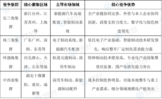 图表:中国制动器行业企业竞争集群分布